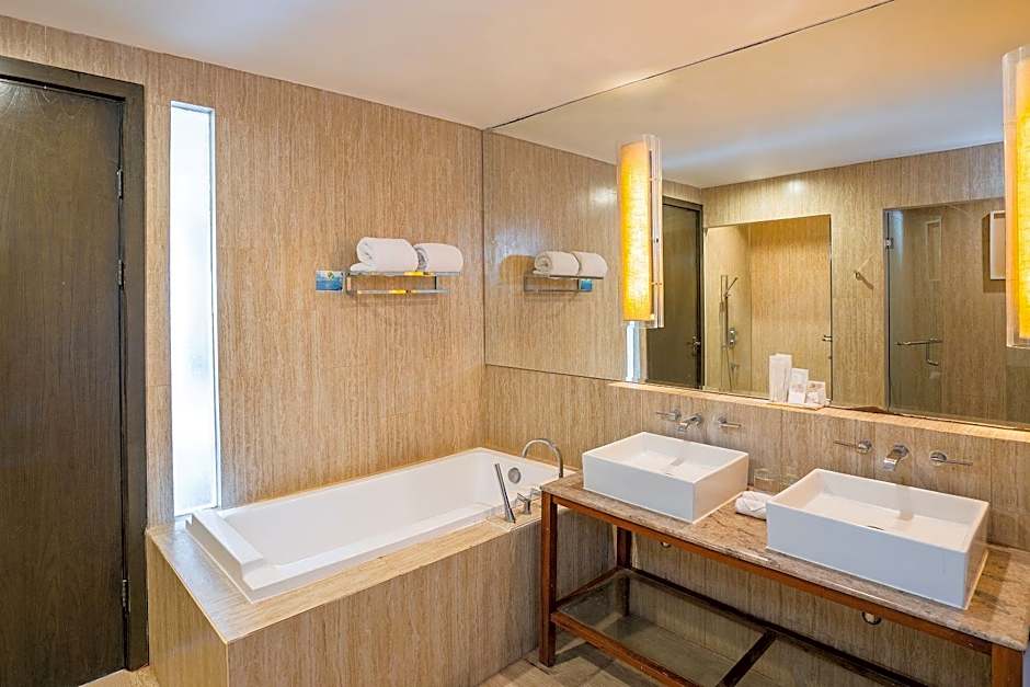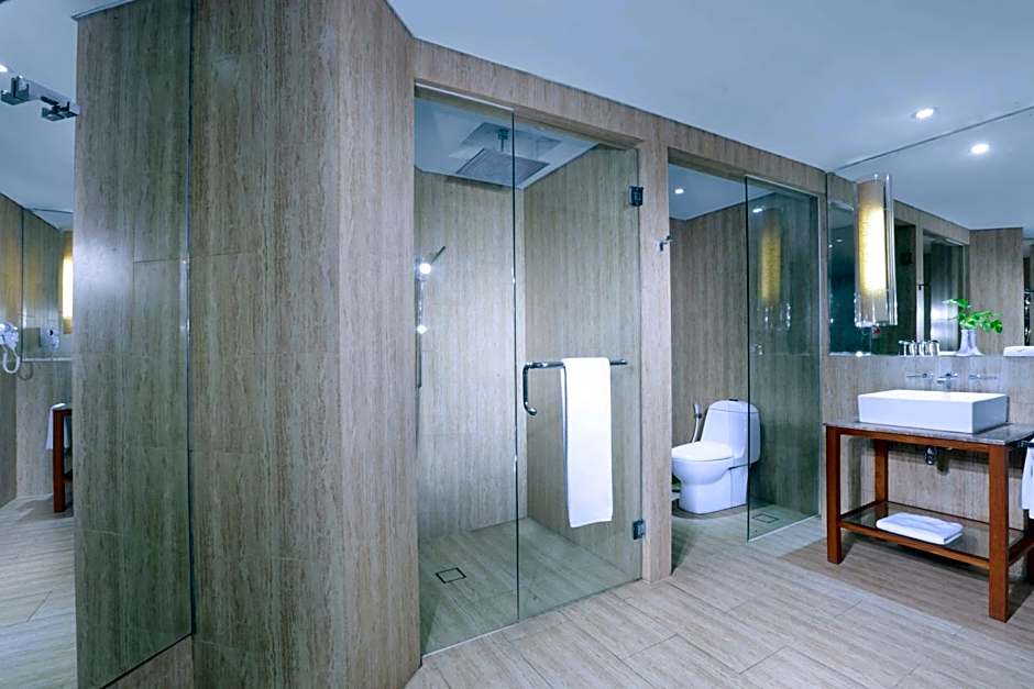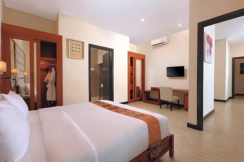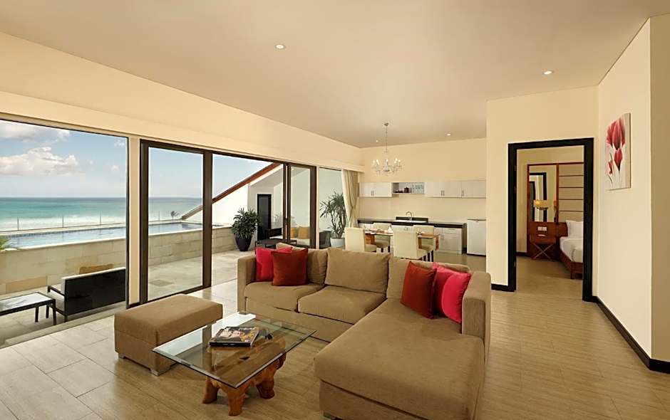 Dining at the resort is a delightful experience with VUE Restaurant serving a diverse menu of local, Asian, and international dishes. Guests can also unwind with a variety of refreshing drinks at the poolside bar. A complimentary daily buffet breakfast featuring Indonesian and international favourites is available to start your day. The resort's prime location places it just a 5-minute walk from Finns Beach Club, a 12-minute drive from Sunday Market La Briza, and approximately 35 minutes by car to Tanah Lot. Ngurah Rai International Airport is conveniently located 9 km (5.7 mi) away, with airport shuttle services available for a fee.